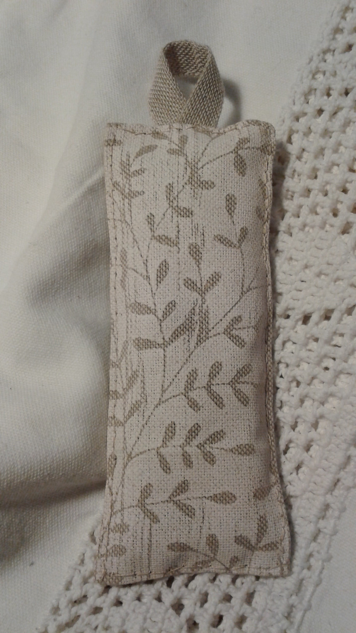 Sac de lavande fermé. Tissu lin beige et crème.