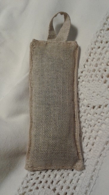 Sac de lavande fermé. Tissu lin beige et crème.