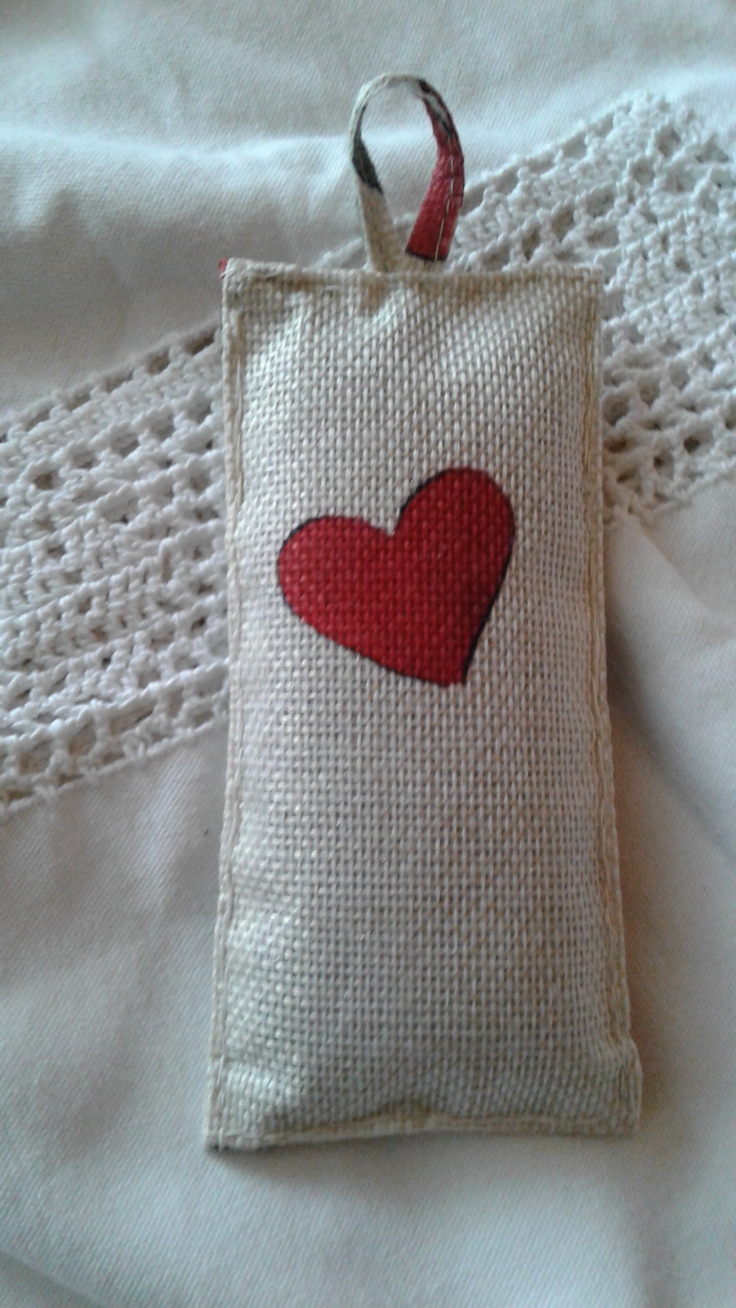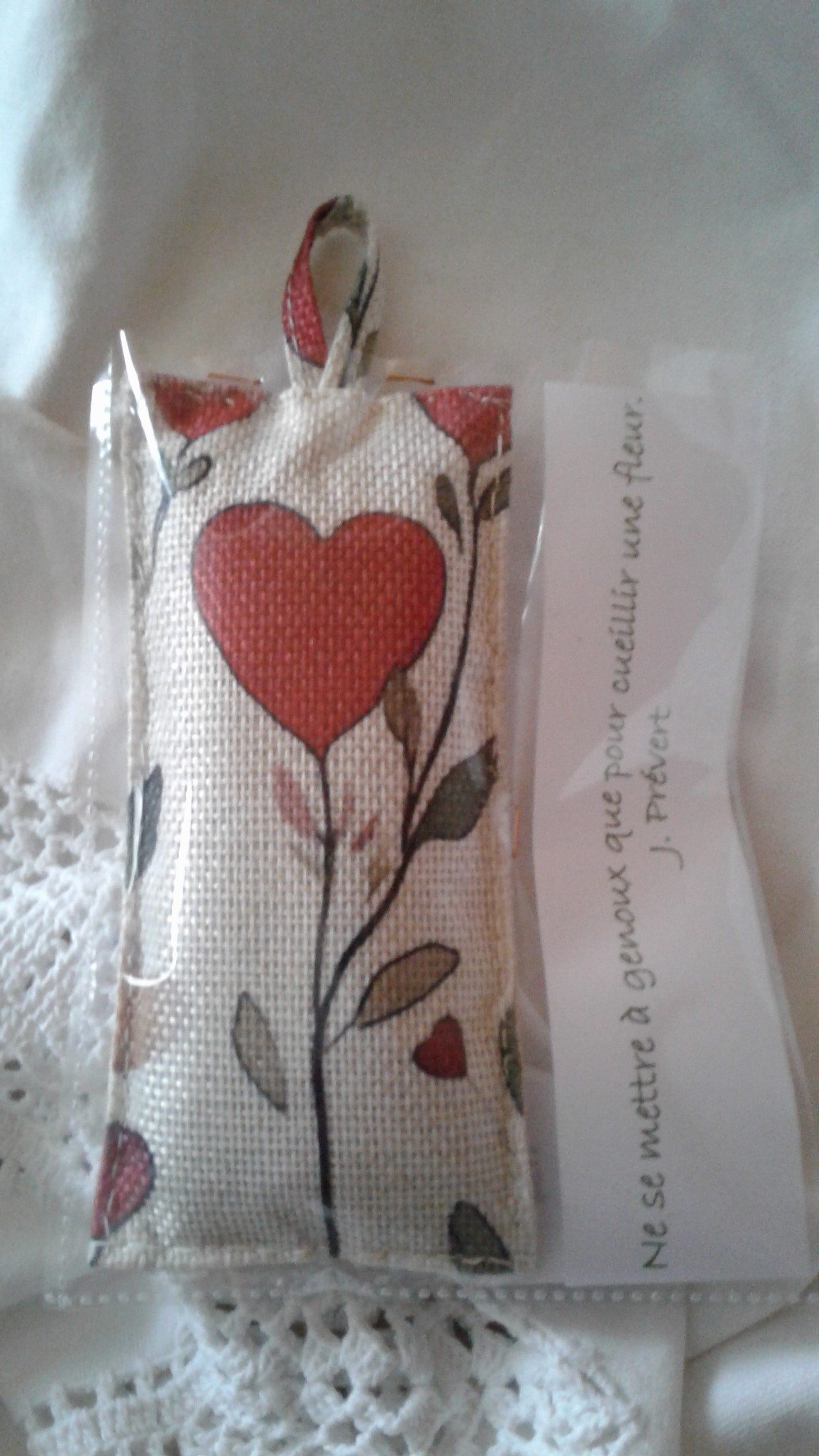 Sac de lavande , tissu fleuri, fermé. Présenté dans une pochette , accompagnée d'une citation.